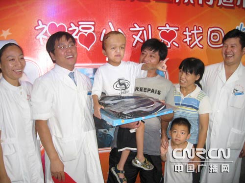 中广网厦门8月17日消息(记者刘立忠 通讯员那伟 高树灼)16日上午,伴随着一曲饱含深情的《祝你平安》的歌声,牵动无数人的巨颅畸形儿小刘京在父母和医护人员的陪同下,缓缓走入厦门市第一医院会议室,医院在这里特别举行了“我国首例颅腔重建全颅再造术患儿出院欢送会”,欢送小刘京康复出院。