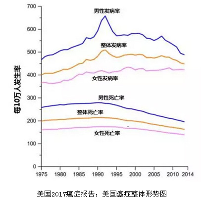 近年来,民众消费升级带来的医疗需求增长,推动了“出国看病”和“医疗旅游”产业的发展,越来越多的人开始注重医疗的高品质和个性化。据不完全统计,2015年中国就有近3000人选择赴美就医。作为目前最高端的跨境医疗目的地之一,美国在许多疾病治疗领域,拥有大批优秀的医学专家和科学家,他们在各种新药开发、临床研究、技术革新、疗法创新上,做出了巨大的贡献,并且通过多学科诊疗合作,大力提升了各类疾病的治愈率,尤其使美国癌症发病率和死亡率呈逐年递减趋势(如下图所示)。