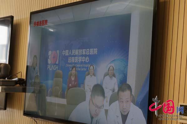 中国网中国视窗讯 3月10日上午,在河北省承德县医院远程会诊中心,外三科主任李海群和主管医生李博及患者家属,通过网络视频和远在北京的中国人民解放军总医院远程医学中心的专家,共同就一例骨髓炎、化脓性膝关节的住院疑难患者进行远程会诊。