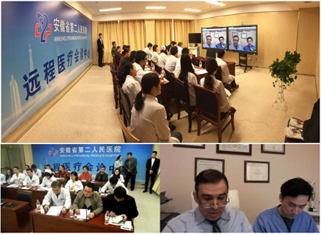 在经过近一个小时的视频交流后,本场会诊活动宣告圆满结束,会诊效果得到了现场众多知名专家的认可和肯定,对患者的后续治疗具有重要的指导意义。这种会诊方式有效避免了患者四处奔波求医之苦,能够在疾病确诊的当下快速预约到世界权威医学专家进行问诊,针对疾病的诊断和治疗提供第二诊疗意见。同时,安徽省第二人民医院“中美远程会诊”服务的正式启动,也将有力推进该院医疗互联网化和国际化进程,更好地服务于患者,缓解医疗专业人员的不足,降低医疗服务成本等现实问题。