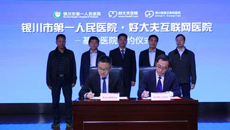 4月18日,银川市第一人民医院宣布,已正式签约成为好大夫在线银川智慧互联网医院(以下简称好大夫互联网医院)的线下基地医院。同时,双方合作的远程专家门诊正式开诊。
