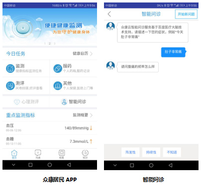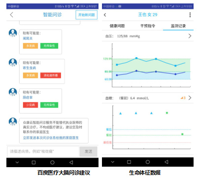 此次携手,百度医疗大脑以开放平台的形式为众康云提供医疗方向的人工智能技术输出。居民通过输入症状、以对话的形式进行自诊,结合众康云居家智能健康管理集成终端采集的生命体征数据,为居民的自诊进行个性化匹配,对智能问诊的对话和预诊结果进行精确引导。同时,居民可将症状描述和百度医疗大脑预诊结果通过平台推送给家庭医生,家庭医生进一步结合居民的健康数据做出确切的疾病诊断,提高诊疗效率和质量。