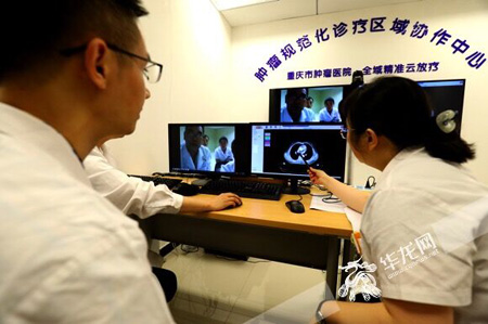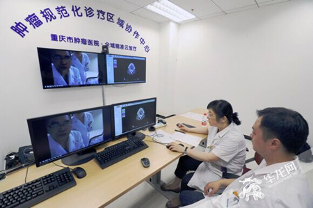 华龙网7月27日17时13分讯(记者 黄宇 实习生 陈婉冰)不用专程奔波到主城,肿瘤患者在区县医院就能让主城专家远程制定放疗方案。7月26日,记者从重庆市肿瘤医院了解到,西南地区首个肿瘤精准放射治疗区域性协作云平台每周三常态化运行,该平台能够开展靶区勾画、放射治疗计划设计等远程服务,实现医疗资源的共享,提升基层医生肿瘤诊疗能力,方便当地百姓就诊,借助“互联网+医疗”缓解看病难、看病贵的问题。