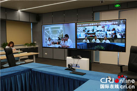 江苏省人民医院心血管内科主任医师李新立正在与新疆克州人民医院的医生进行远程会诊。