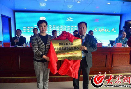 中国医学科学院阜外医院对外发展处处长陶玉秀(左一)为曹县人民医院授牌