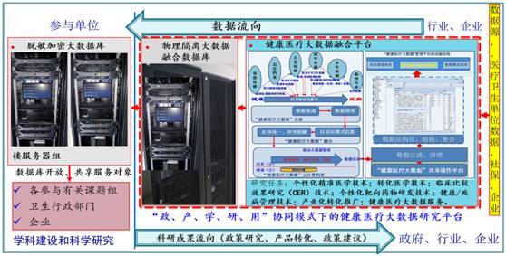 ▲政、产、学、研、用”协同模式下的健康医疗大数据平台