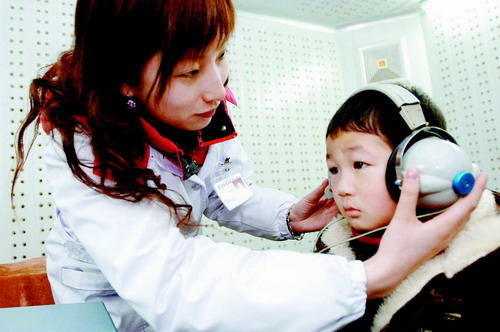 (一名聋哑患儿在接受治疗。分期付款有望帮助更多的孩子接受治疗从而恢复听力。资料图片)