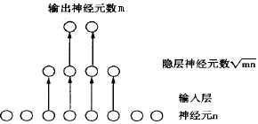 在神经网络训练的过程中,比较重要的是网络层数的确定、隐含层神经元个数的确定等几个问题。因为本文采用了10个参数,所以本网络输入层有10个神经元,而输出层确定为2个神经元,根据在许多场合均适用的一条有关确定隐含层节点数的规则是所谓的几何金字塔规则[2]:从输入层到输出层,节点数不断减少,其形好似金字塔,见图2。根据此规则和该神经网络的输入层和输出层的神经元个数确定本网络的隐含层神经元个数为5左右,然后根据多次实验确定隐含层神经元个数为6。
