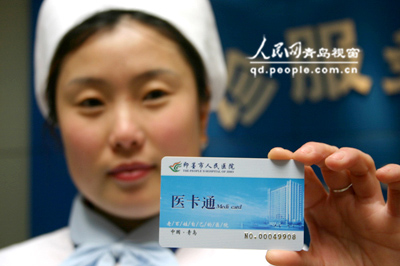 人民网青岛视窗1月16日电 杨明涛 李馨摄影报道:排队挂号、排队交钱、排队就诊……曾经繁琐的看病诊疗手续,如今在即墨市人民医院早已销声匿迹。该院率全省之先启用一卡通服务系统,把划价缴费和诊疗活动结合起来,小小一张卡,既录有病人信息,又可以划价缴费,病人持卡可直接找医生就诊,最大限度地为病人提供了便利。自2007年运行以来,"一卡通"受到即墨市民热烈欢迎,目前已有20多万人办理了此卡。