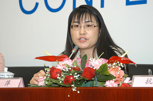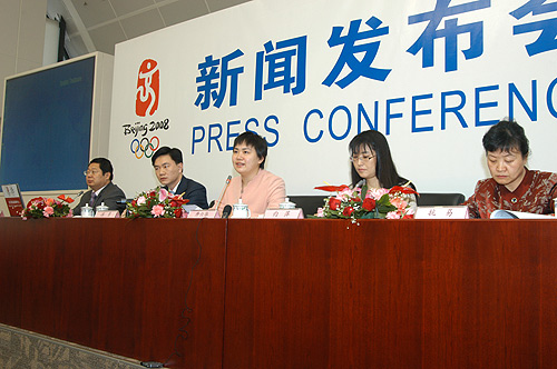 图为北京奥组委运动会服务部副部长向萍回答记者提问 新华网 张泳摄