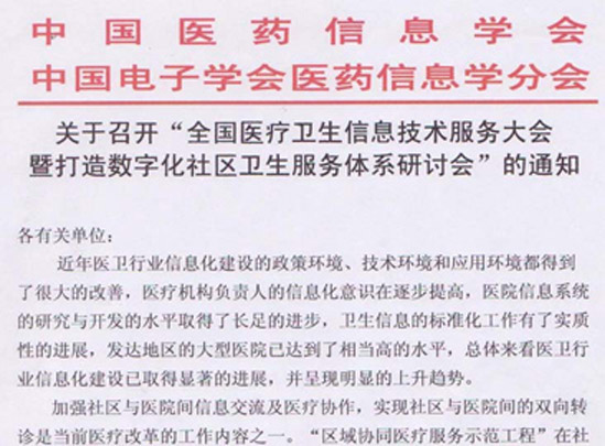 关于召开“全国医疗卫生信息技术服务大会”的通知