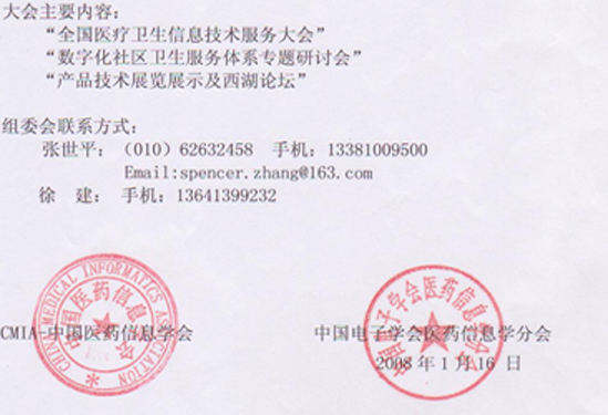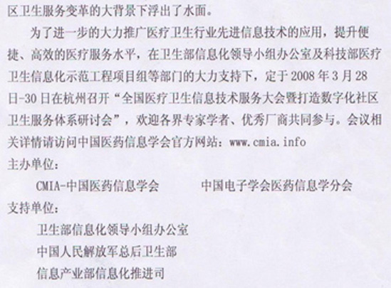[作者:CMIA—中国医药信息学会 中国电子学会医药信息学分会 | 发表时间:2008-1-16 |点击数:4085 ]