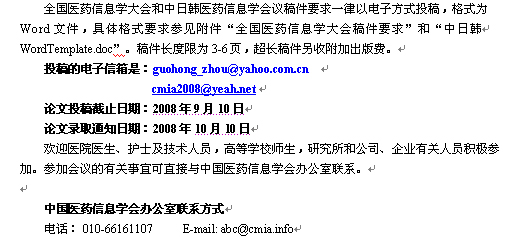 来自:CMIA—中国医药信息学会 中国电子学会医药信息学分会 | 录入日期:2008-3-14 | 责任编辑:bjlw |
