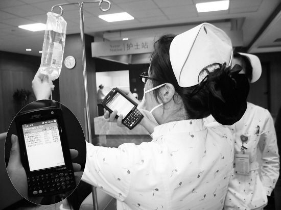 当病人来到输液室,护士接收病人药品核对,通过扫描该病人注射单的条码,生成确认病人身份与所用药物唯一关联标识。输液病人身份条码标签贴在输液管上,在整个输液过程中,护士手持EDA,杜绝了输液、接瓶的差错。如护士为病人拔针前,用EDA扫描后,如该病人还有未输完的液体,EDA将给予提示,避免了漏输的情况发生。通过每个输液坐椅的呼叫器,护士可持EDA对输液室任何病人的呼叫做出反应,避免了病人在护士繁忙的时候大声呼叫。 |