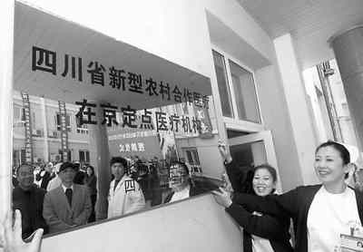 日前,北京—四川新型农村合作医疗定点医院在羊坊店医院揭幕。北京市卫生局农村处处长吕璠表示,这是省际医疗保险账户无障碍流转的探索之举。同时,两地卫生部门正在探索对参合农民在京医疗花费联网审核,实时报销补偿。