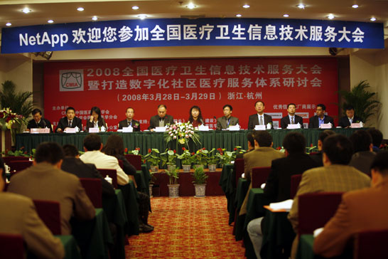 2008年3月28—29日,由中国医药信息学会、中国电子学会医药信息学分会主办,“2008全国医药卫生信息技术服务大会暨打造数字化社区医疗服务体系研讨会”在春光明媚、景色宜人的杭州召开。应邀出席本次大会的有:国家卫生部、总后卫生部、部分地区卫生厅局和各地医院的医药卫生信息化主管人员、技术人员,以及相关企业公司的来宾,共280余人。