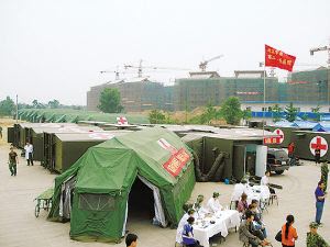 十余万子弟兵肩负党和人民的重托,顶着滚石和余震,向灾区开进;一支支医疗队携带我军新一代现代化卫生装备,在废墟瓦砾中开辟出一片片生命的绿洲。每一个打开的军医背囊、每一辆疾驰的野战急救车、每一处展开的医疗方舱,倾注着子弟兵对灾区人民的鱼水深情,也融注了广大卫生装备科技人员对灾区人民的拳拳之心。近年来,总后卫生装备研究所贯彻科技强军战略,紧贴实战研制出一大批精良快捷的野战救护装备。这些装备在这次不期而遇的震灾救援中大显身手。近日,记者赶赴该所,采访了研制这些装备的“幕后英雄”。