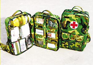 走进该所的成果展示厅,从单兵至班排,由陆地到海空,小到注射器、创可贴,大到各型担架、呼吸机,各式各样的火线急救装备琳琅满目。一个个书包大小的背包吸引了记者的目光,这就是在此次救灾中频频闪现在传媒画面上的军医背囊和卫生员背囊。麻雀虽小,五脏俱全。小小背囊竟装有60余种各类急救药品和器械,吸痰器、氧气面罩、手术器械包等分装于10余个小袋中,每个袋子都通过尼龙褡扣固定在背囊内。