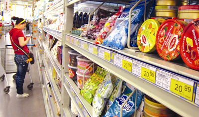 图为:不久的将来,超市里的条形码将被电子标签取代 记者刘蔚丹 实习生胡珊摄 识别系统自动采集商品信息 1秒钟就可以算好账