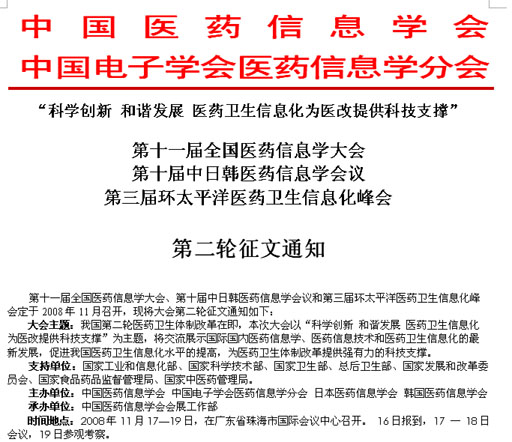 [作者:中国医药信息学会 中国电子学会医药信息学分会 | 发表时间:2008-5-28 |点击数:2602 ]