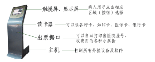 挂号机一般由主机、触摸屏、显示器、读写器、微型打印机组成,系统由专用挂号软件控制。 挂号机整个流程根据医院挂号实际情况设计,功能全面、操作简单明了,病人持IC卡、医保卡或银行储蓄卡,插到 挂号机读卡口上,选择要挂的号,点“确定”后 挂号机当即打印出挂号凭条,整个挂号下来十秒不到。一个大型三甲医院摆上五六台,即能完全取代人工柜台挂号。