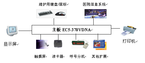 EC5-370VDNA尺寸小巧、功能完善,带四串口一并口,用户可直接连多种外周设备(触摸屏、读卡器、票据打印机等),而无需购买串口扩展卡等,节约成本的同时,亦为客户减少由于多次转接而带来的系统故障率高等问题;同时,方便 挂号机厂商进行结构设计,使产品提早上市,获得竞争先机。