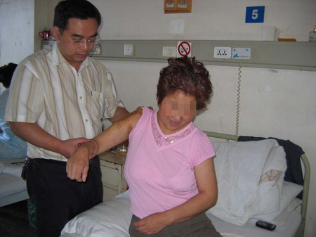 昨天上午,记者在太和医院见到患者肖某,她的右肩膀已活动自如,能在医生的指导下,做各种运动。据姚忠军介绍,术后患者愈合情况良好,要不了多久,就会康复出院。 |