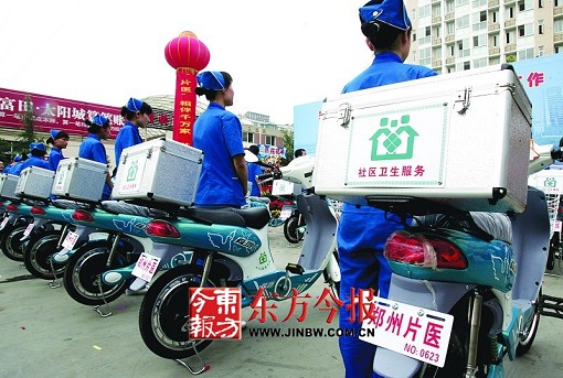 除了统一的服装和车辆,郑州市卫生局还给他们配备小灵通、工作用的电脑及软件,并统一购买了营养展示物品、体能监测卡、片医胸卡、家庭联系卡、公示牌和宣传页。据介绍,各试点还要增添健康书屋,而且部分试点已在社区建立了片医工作站,服务起来更方便。