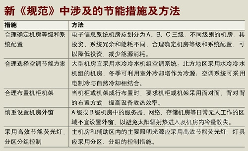 新规范中类似这样以节能为出发点的条文还很多,包括对机架机柜的摆放方式、照明光源、机房窗户设置的细节考虑等等,充分体现了对节能环保的关注。