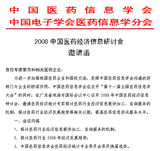 2008中国医药经济信息研讨会邀请函