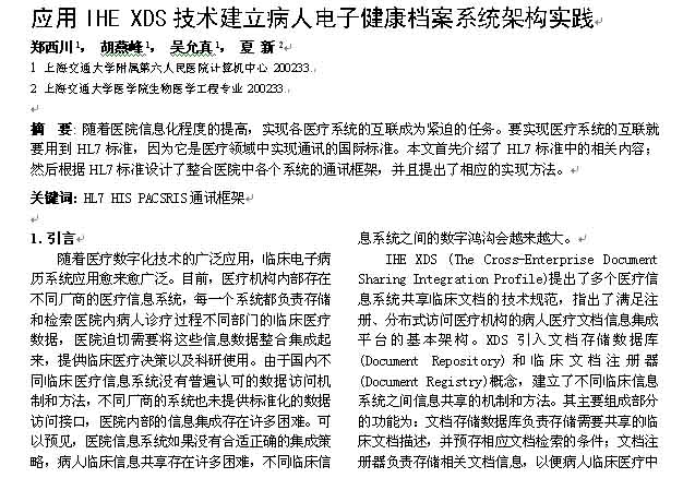 应用IHE XDS技术建立病人电子健康档案系统架构实践