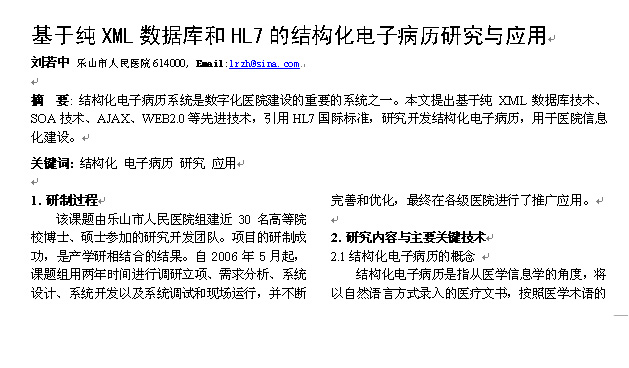 基于纯XML数据库和HL7的结构化电子病历研究与应用