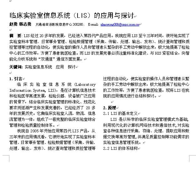 临床实验室信息系统(LIS)的应用与探讨
