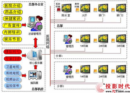 医院信息发布系统组网方式: