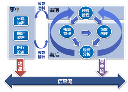 在这个大背景下,金算盘医院经营管理信息平台应运而生。金算盘医院经营管理信息平台是一套集先进的管理思想和强大的信息技术于一身的,面向不同规模医院经营管理的全面解决方案。该平台以“两大循环、三流合一”的理念为基石,以“财务业务一体化、财务成本一体化、战略绩效一体化”三个一体化管理为核心,有效帮助医院解决在财务管理、成本管理、预算管理、绩效考核、物资管理、资产管理等方面面临的种种难题和困惑,全面提升医院的核心竞争力。