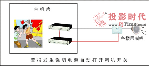 如诊室的喇叭在有病人就诊时是关闭的,如果这时有消防信号触发系统,系统发出报警信号的同时会自动用24V电强制打开喇叭开关,使喇叭能响起系统的报警声。