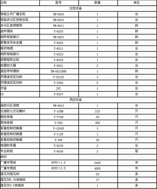 b.广播主机TM-8010和TM-8011组合可以控制多达64个独立分区,本系统里只利用了51个分区。在这以后系统的扩展提供的方便。