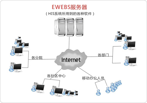采用EWEBS系统平台后,所有的分院、社区中心或是本院的不同部门间,都可以根据相应的权限,利用Internet进行所有的操作。对网络带宽要求小、且有特殊的安全体系支撑,保障了所有的应用快速协同,提高医院整体工作效率。像以前比此间交流一个病例的状况,还得把相关资料(病例、X光片等)通过互联网传递,速度慢,占据带宽也同时影响其他同事的办公。现在都不用了,直接查看就可以,提高自我效率的同时,给病人乃至全人类的服务质量有效提升。