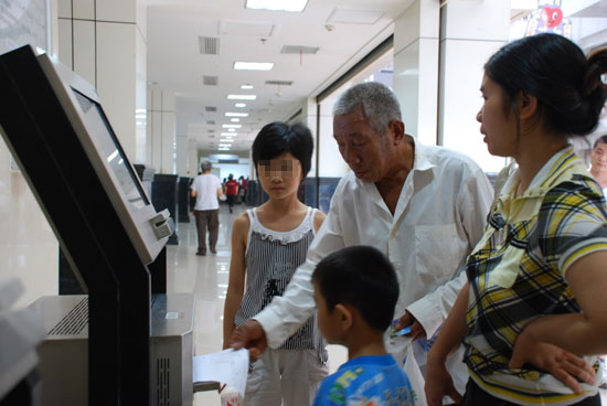 图为患者正在自助取化验单