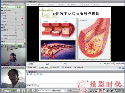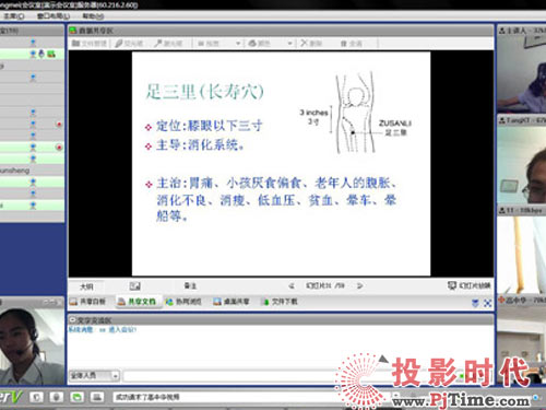 在会议现场,唐老师通过播放幻灯片向学员讲授,在外地的人员通过视维视频会议系统专著地听课、认真的做着笔记,外地人员有不明白的问题可以“面对面”向唐老师问答交流。