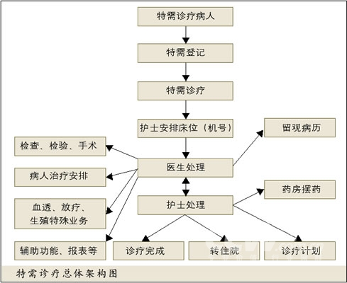 因此,如果能够对急诊留观、放疗、透析、生殖等介于门诊和住院之间的一些特需诊疗进行信息化处理,对提高医护人员工作效率、加强病历管理、优化就医流程,并与门诊系统和住院系统进行信息共享,进一步完善和丰富医院信息化建设都具有非常重要的意义。