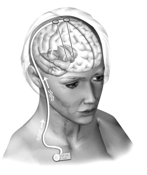 “脑起搏器植入”手术示意图