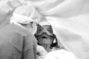 随后,王老师被推入手术室进行麻醉,神经外科医生为其头颅打孔,将两根长约5厘米、各有4个电极片的“天线”植入大脑丘脑核处。