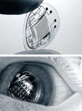 目前,华盛顿大学的科学家,眼部医师和教授们就正在研发一款拥有“视野辅助功能”的电子隐形眼镜。他们将控制电路,通信电路,微型天线置入隐形眼镜中。再将这些电子零件与LED发光二极管融合在一起,通过无线电波的驱动,可以向佩戴者展示文字,图片和表格类的信息。与此同时,内置进的微型电路和LED必须是半透明的,这样就不会影响到佩带者的正常视野。科学家们认为,这款电子隐形眼镜的完善版本将可在视野中叠加一个数据层,为佩带者所看到的人和物体提供字幕说明,并实时监测如体温和葡萄糖水平等人体重要健康指标。