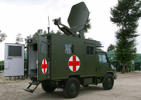 葛立德:医疗车上面有一个天线,应该是用于远程医疗的设备。因为在前线的时候,只能是一个急救的功能,那么在遇到一些特殊的情况之下,这个急救不能解决的时候,它可能需要通过远程医疗这样的手段,来跟后方的医院专家取得联系,然后通过视频的方式,把伤员的情况传回去,然后专家坐在后面的野战医院里面,现场来诊断,来会诊,就可以提供一个医疗的方案,来指导前方的医生采取一些措施。这样的可以大大地提高救治伤员的能力。