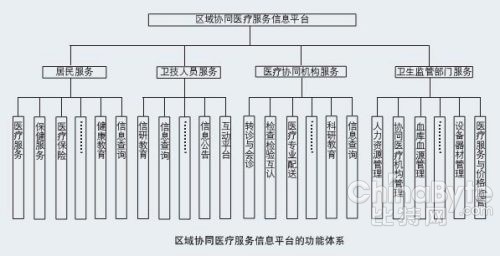 区域协同医疗服务是指在一定区域范围内,利用信息系统以及对现代服务业的研究,使各种医疗资源、医疗机构互相协作、资源共享,实现医疗资源利用的最大化。区域协同医疗服务是大范围、多角度、宽领域的协作和共享,内容主要包括以下方面:①医疗协同服务,这是区域协同医疗服务的核心部分。包括医疗资源与信息的共享,如医疗文档、技术、设备和人员等软硬件资源的共享;医疗协作,如农村与城市之间、社区与医院之间的双向转诊,检查检验结果互认,远程会诊医疗。②医疗保障服务,包括医疗专业配送,如药品器械配送、检验标本送检;网上信息服务,如网上预约、挂号、咨询、信息查询等;社区健康管理服务,如个人健康档案管理和家庭健康档案管理。③协同医疗监管服务,主要对区域协同医疗服务中的医疗协同服务与医疗保障服务提供监督、管理与评价,为区域协同医疗服务体系提供支持、协调与配合,使其正常运行并有机结合,从而产生良好的社会和经济效益。