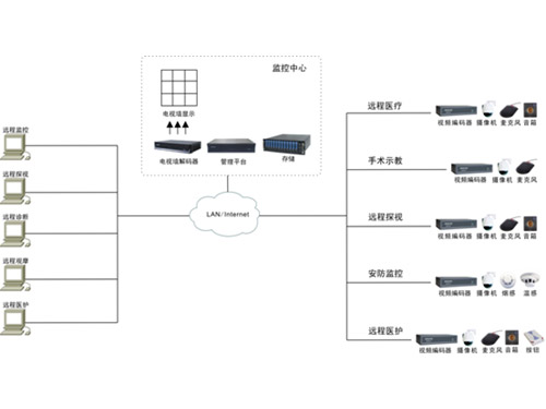 借助于网络视频监控系统,可以通过对各级医疗机构的无边界互联组成一个有效的远程医疗网络,实现对医学资料和远程视频、音频信息的传输、存储、查询、比较、显示及共享,使边远地区的患者能方便地共享优秀医学医疗资源,很好的解决上述问题。