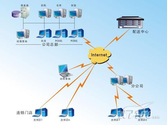 由于给各个门店单独架设服务器涉及到较大的投入成本,实际上,下设门店往往距离较近的2-3个门店共用一个小型的分支数据中心,有些规模较小的门店则干脆在当地的运营商租用服务器主机。