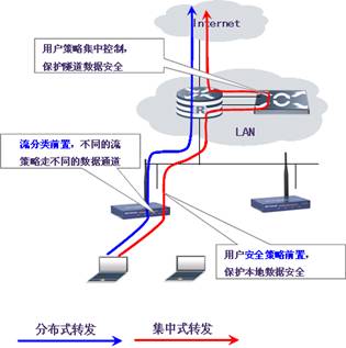 1)灵活的数据转发――支持集中式转发和分布式转发两种转发方式,只支持单一集中式转发使得AC的转发能力在大规模组网或实施11N 无线AP组网时很容易成为瓶颈,而分布式转发方式可以支持用户根据需要让AP基于不同的SSID设置相应的转发模式, 为用户无线网络部署提供了极大的灵活性。