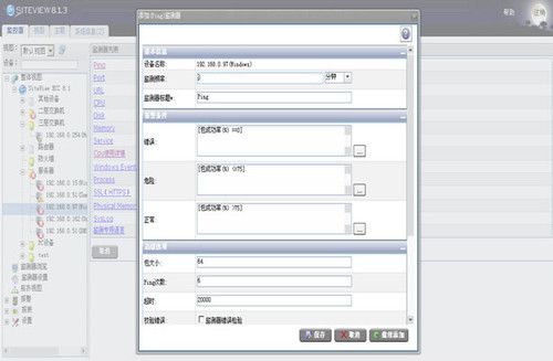 而专攻服务器监控的SiteViewECC则能够规避以上情况的出现。重庆涪陵区中心医院的信息人员在可以自行在SiteViewECC中设置阀值。点击被监测服务器IP,选择内存,就会出现添加(memory)监测器的二级页面,在报警条件中进行自行的选择或者填写相应的数值,例如,一个内存为4G的服务器,正常值<3.5G,危险=3.5G,错误>3.5G。一旦内存持续保持着3.5G或者超过3.5G的利用率,那么SiteViewECC就会发出报警,运维人员根据报警的内容进行故障的排查。